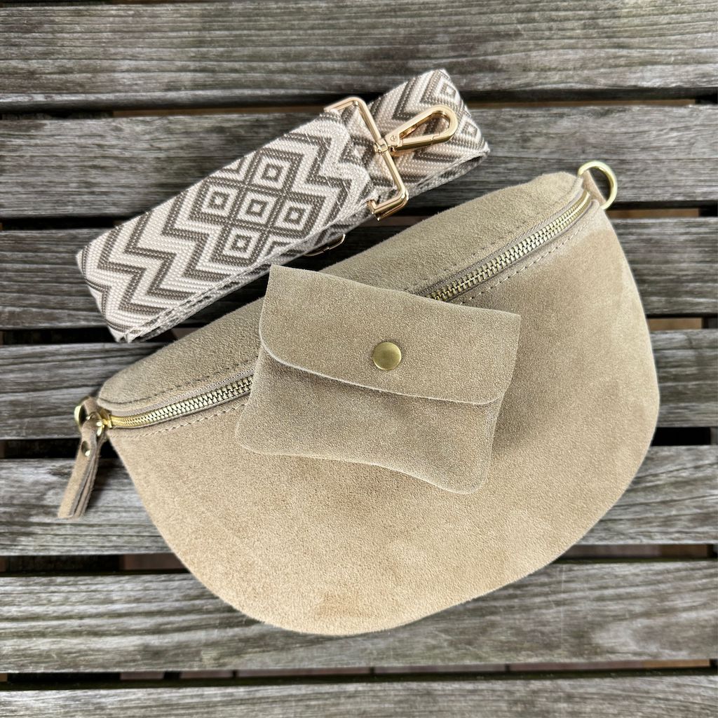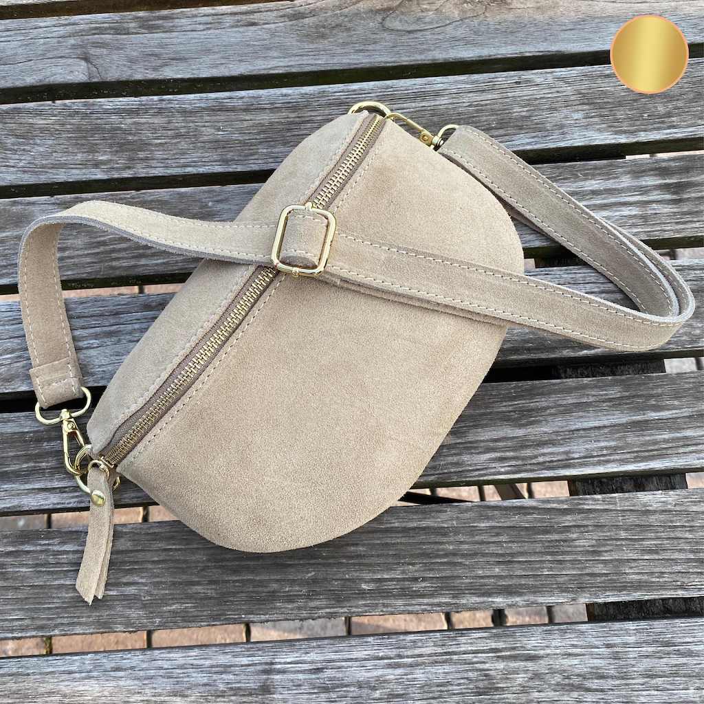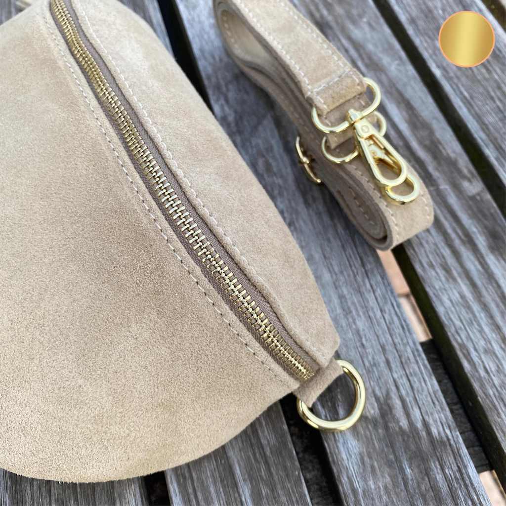 Bauchtasche Damen Wildleder - Taupe - GOLD