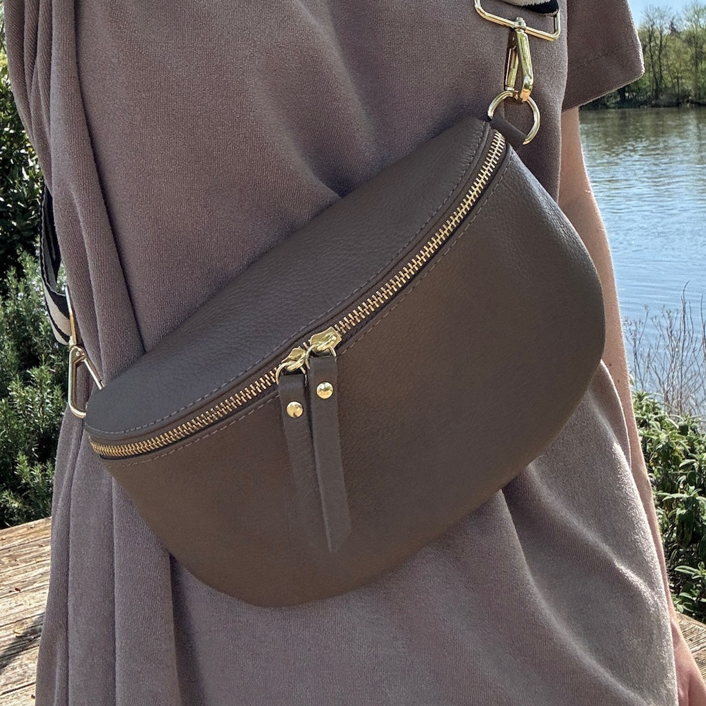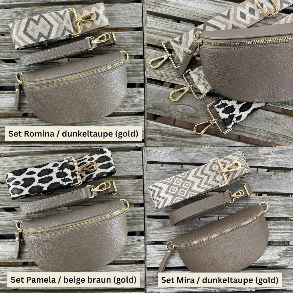 Bauchtasche Damen SET - Dunkeltaupe - Gold