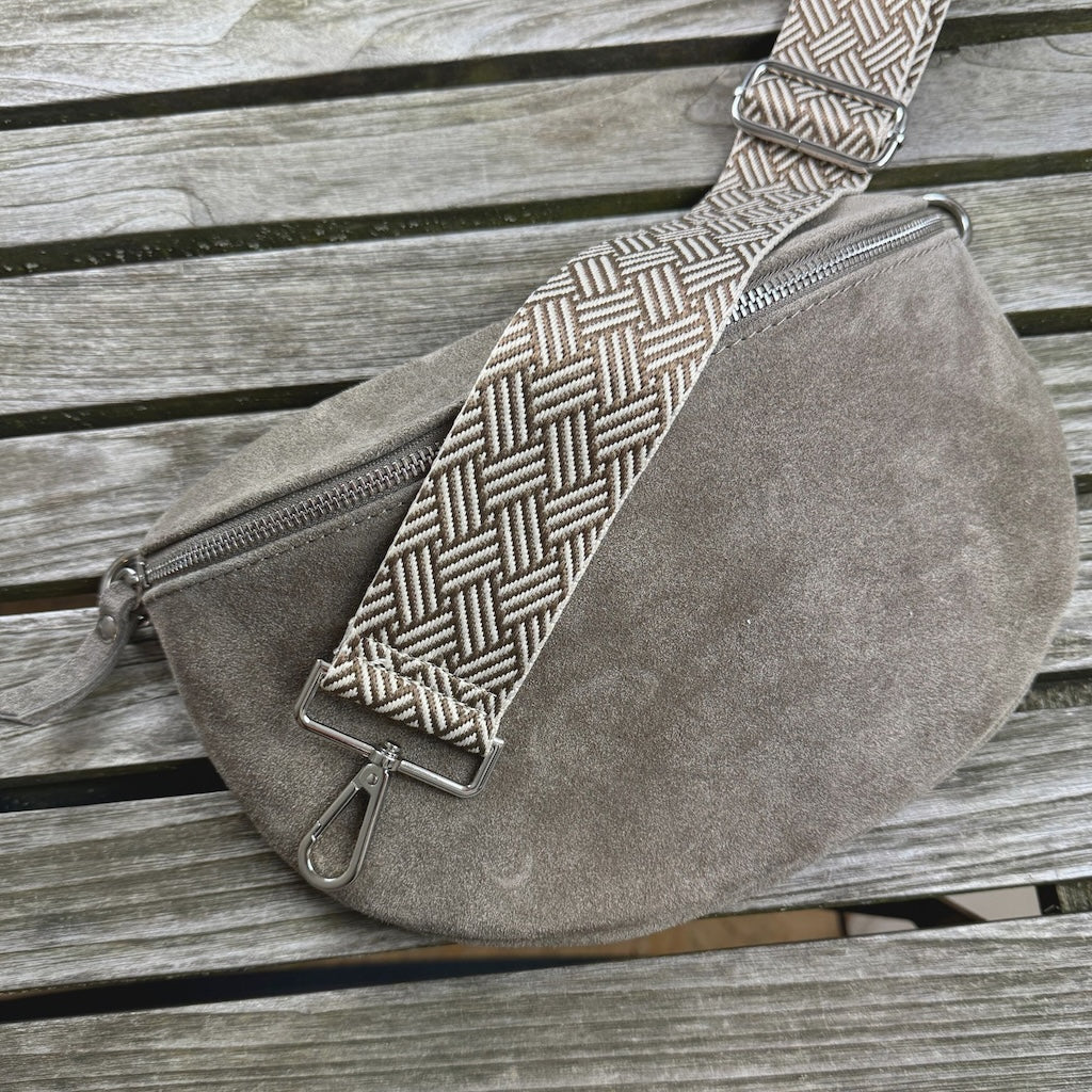 Mugo / dunkeltaupe: Dunkeltaupe Bauchtasche aus Wildleder (groß)