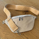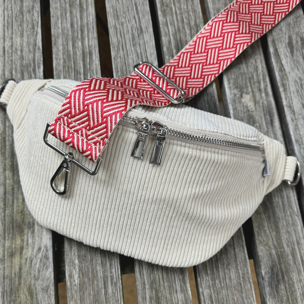 Mugo / rot: beige Bauchtasche aus Leder und Cord