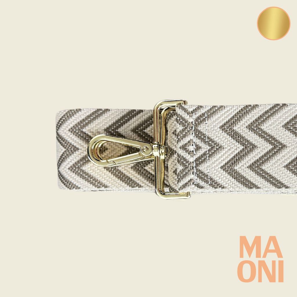 Info: Der Goldton der Hardware des schwarz beigen Gurts ist etwas dunkler, als bei unseren Taschen. Der Taschengurt Mira / taupe ist nur 130 cm lang.