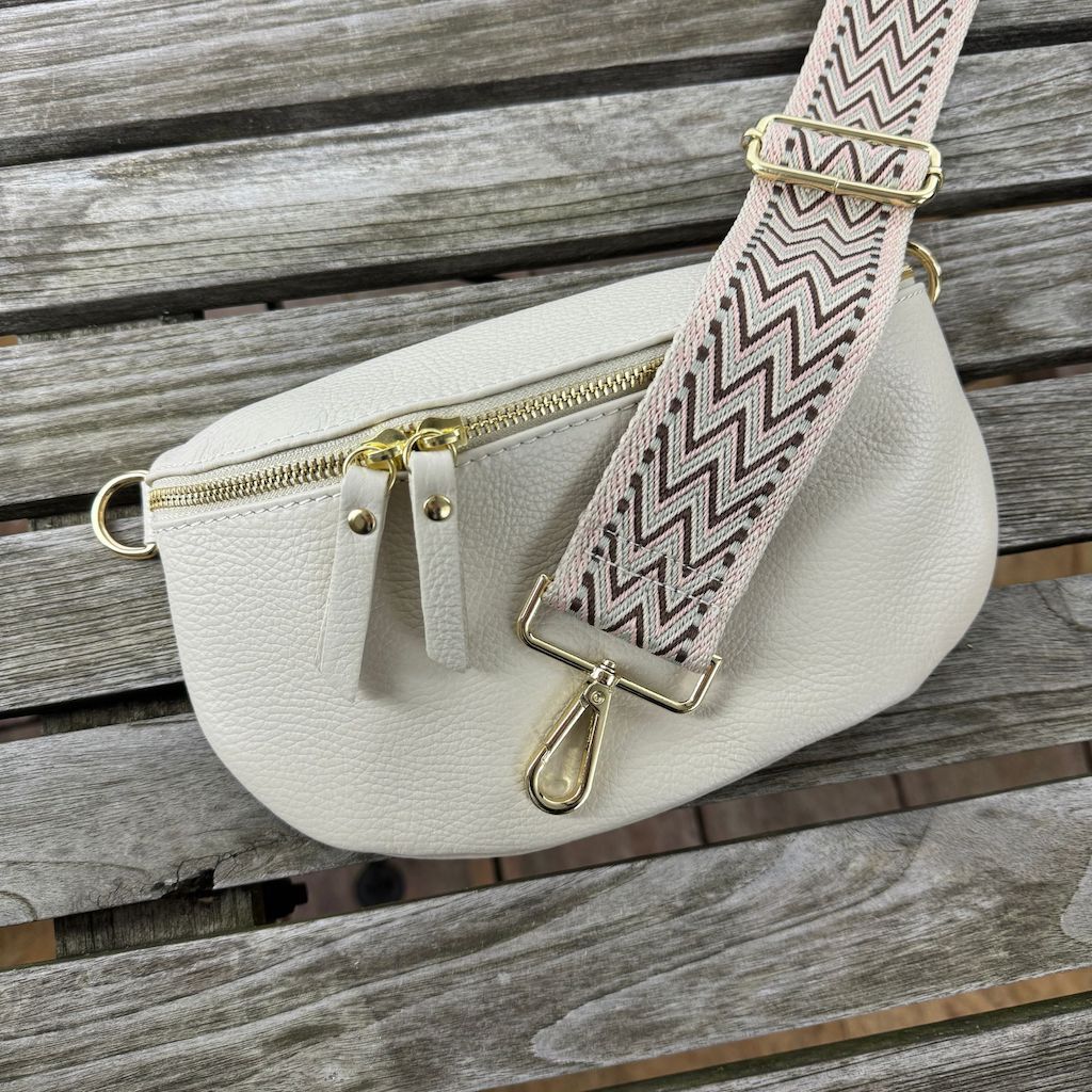 Im Lieferumfang enthalten ist ein Taschengurt mit goldenem Verschluss