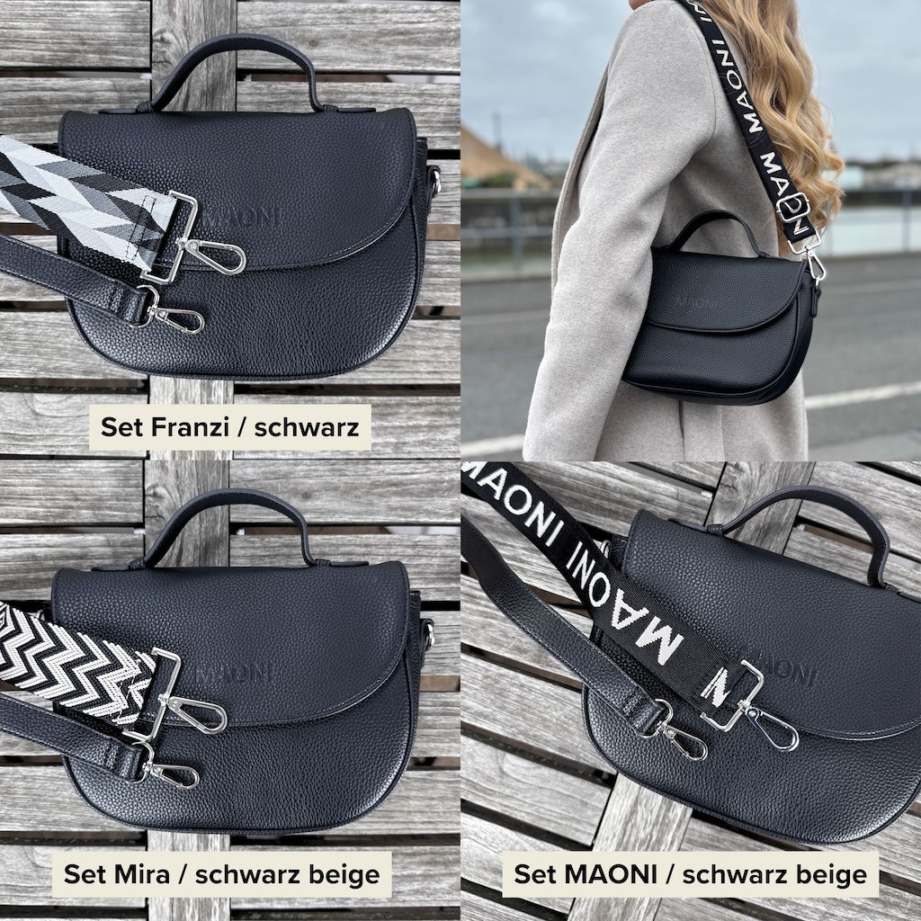 Unsere Umhängetasche ist der perfekte Begleiter für alle Anlässe. Du kannst sie entweder locker über der Schulter oder auch als Crossbody Tasche tragen. Dadurch, dass sich der Gurt abnehmen lässt, kannst du die Tasche mit einem breiten Stoffgurt deiner Wahl individuell an dein Outfit anpassen.