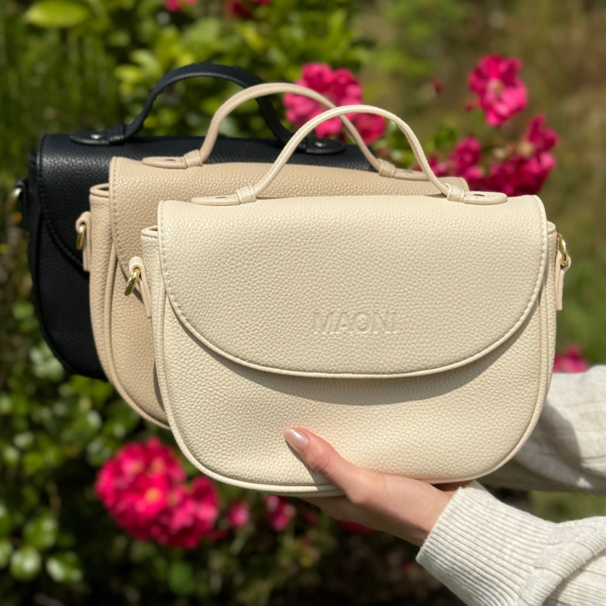 Bitte beachte, dass das Model 1.60m groß ist und die Tasche an dir gegebenenfalls kleiner oder größer wirken kann. Durch die Lichtverhältnisse und Bildschirmeinstellungen kann die Farbe leicht abweichen.