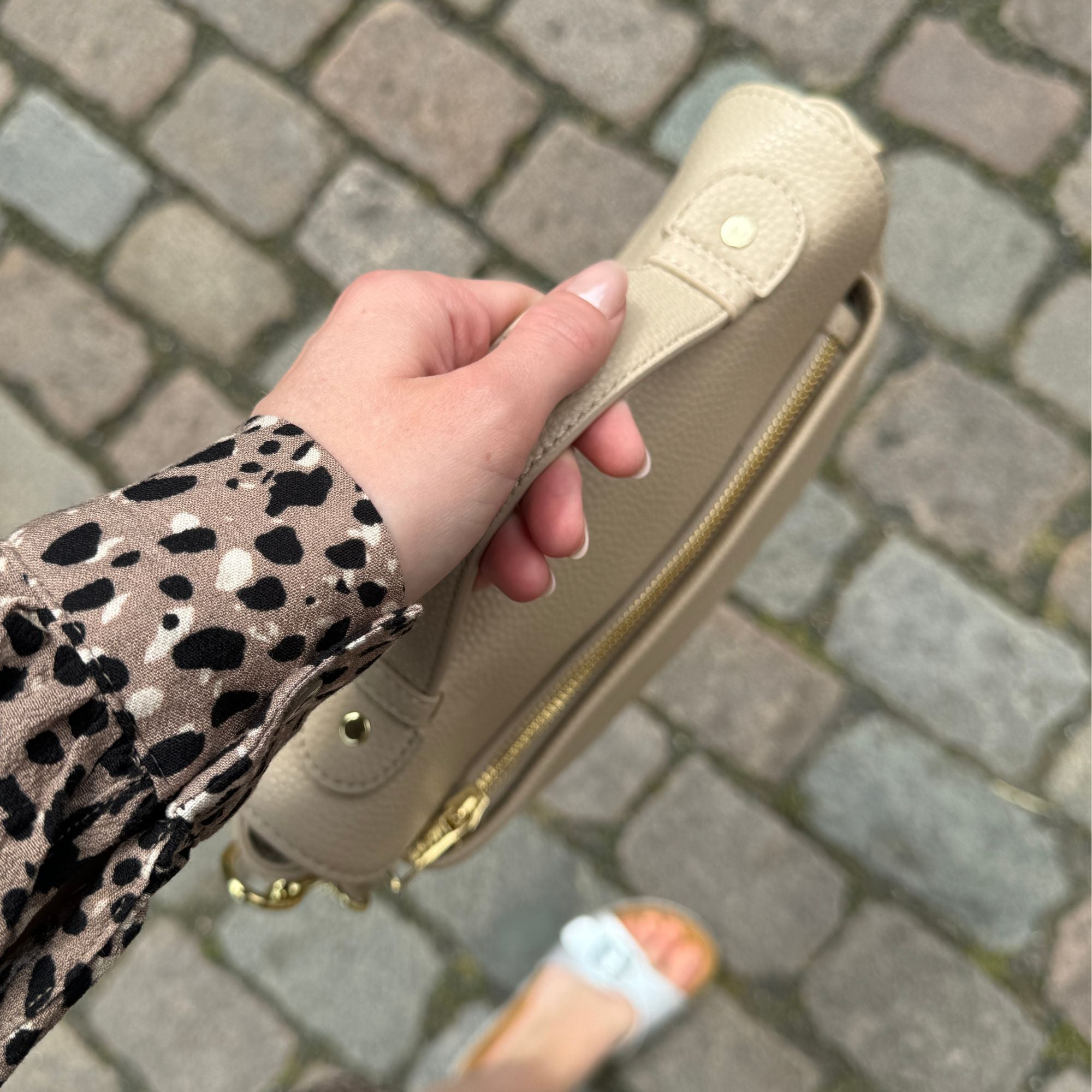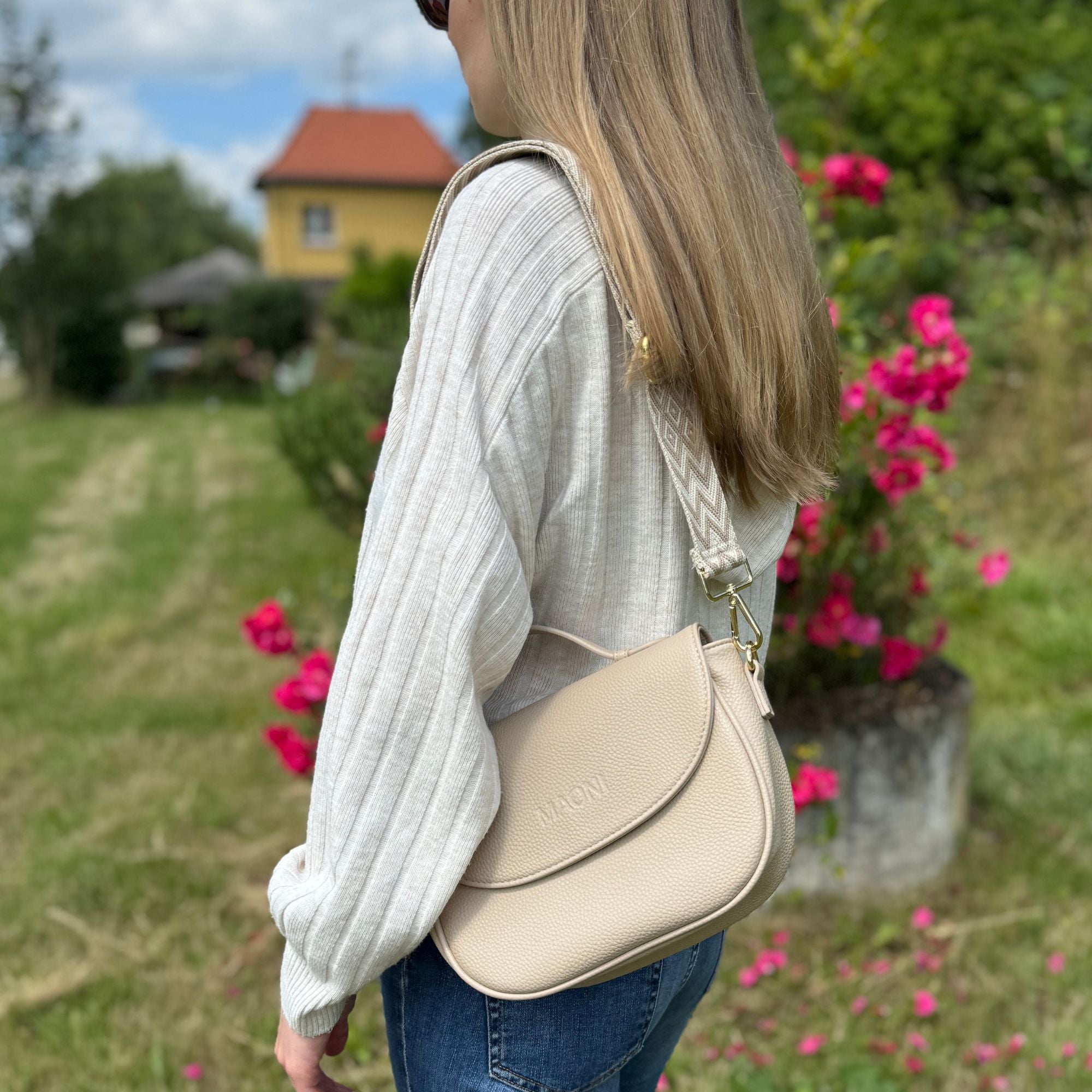 Dank des auswechselbaren Taschengurts kannst du die Tasche jederzeit deinem Outfit anpassen. Die gezeigten breiten Stoffgurte sind nicht Bestandteil des Angebots und können separat in unserem Shop erworben werden.