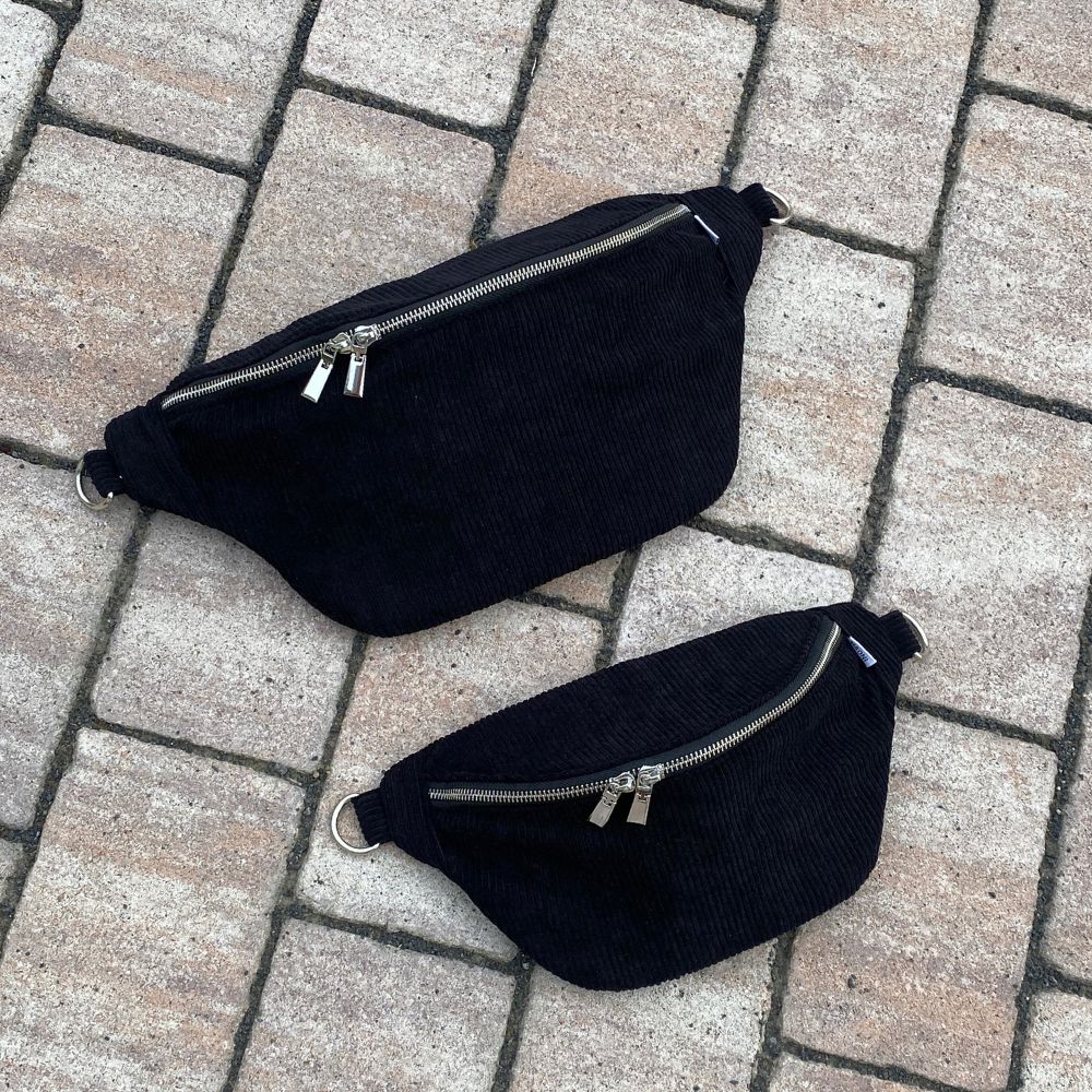 Unsere Bauchtasche aus Cord ist in zwei verschiedenen Größe erhältlich.