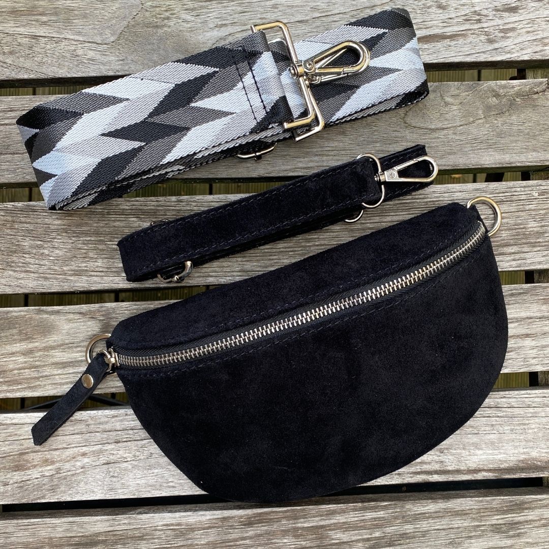 Bauchtasche Wildleder Damen SET - Schwarz