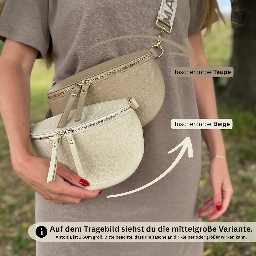 Du bist dir noch unsicher, welche Größe die richtige für dich ist? Kein Problem! Schreibe mir (Antonia) gerne eine Nachricht über das Kontaktformular. Wir finden bestimmt die passende Bauchtasche für dich!