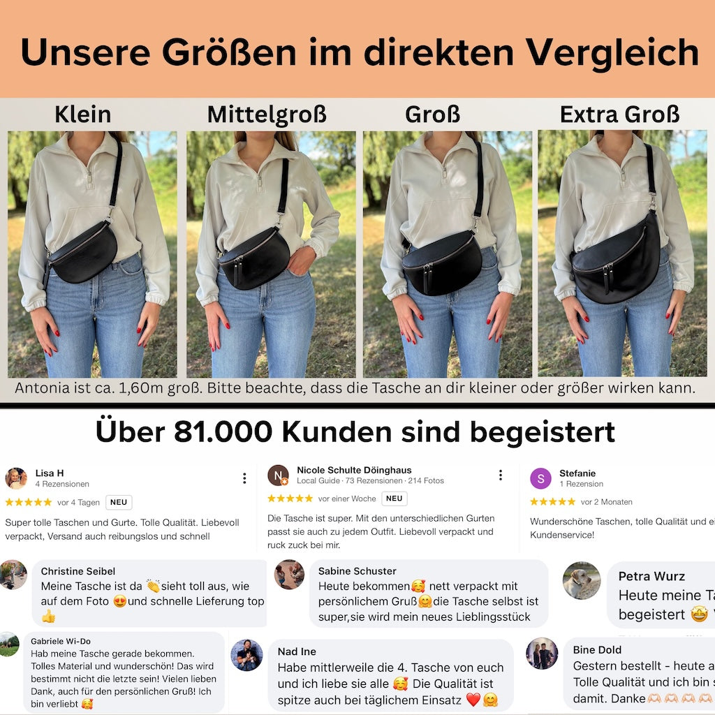 Du bist dir noch unsicher, welche Größe die richtige für dich ist? Kein Problem! Schreibe mir (Antonia) gerne eine Nachricht über das Kontaktformular. Wir finden bestimmt die passende Bauchtasche für dich!
