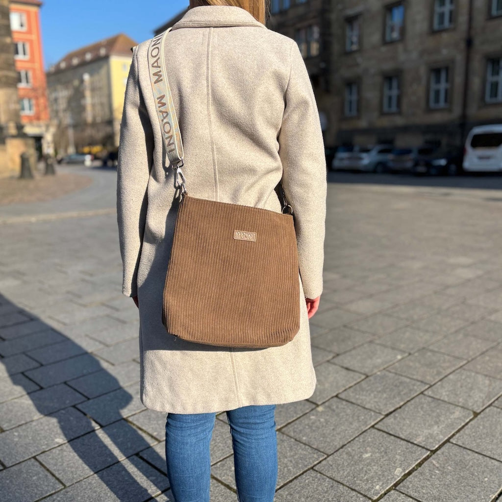 Im Lieferumfang enthalten ist unsere Cord Umhängetasche inkl. des zweifarbigen MAONI Logo-Gurts und einem weiteren Gurt nach Wahl (Set). Die Gurte lassen sich bis ca. 140 cm verstellen.