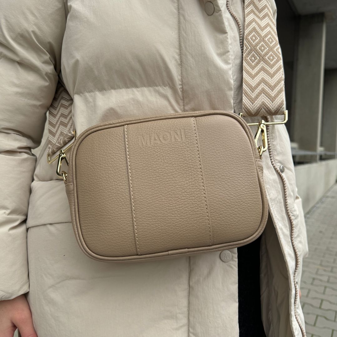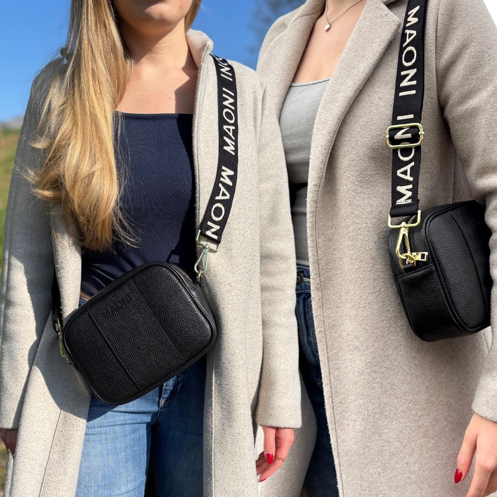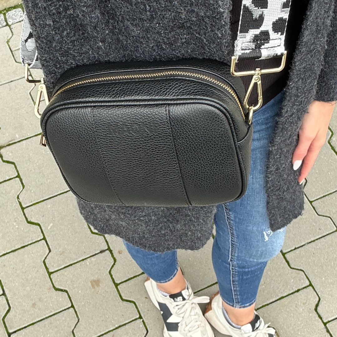 Umhängetasche + schmaler Taschengurt aus Echtleder mit goldfarbener Hardware