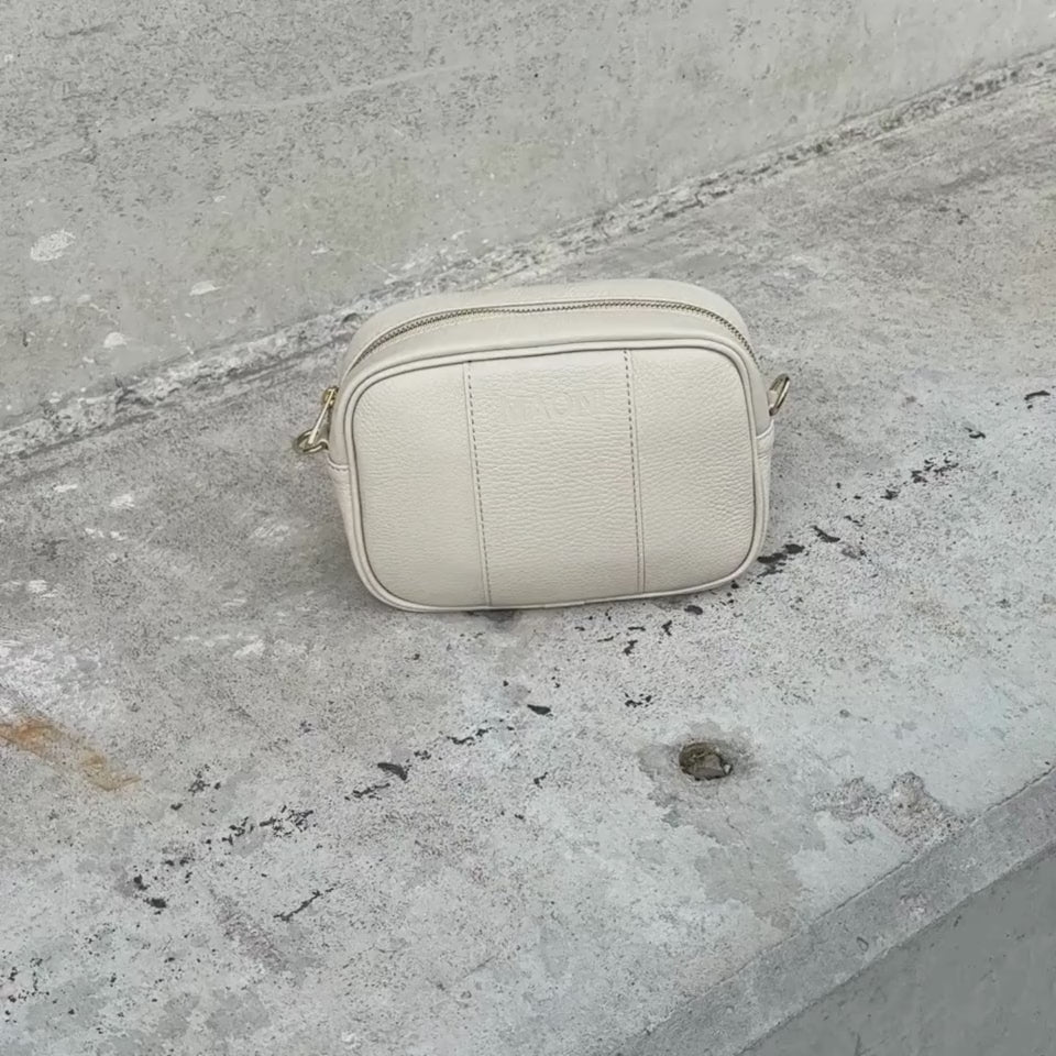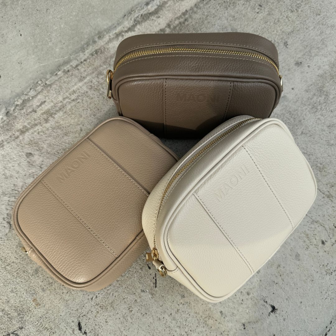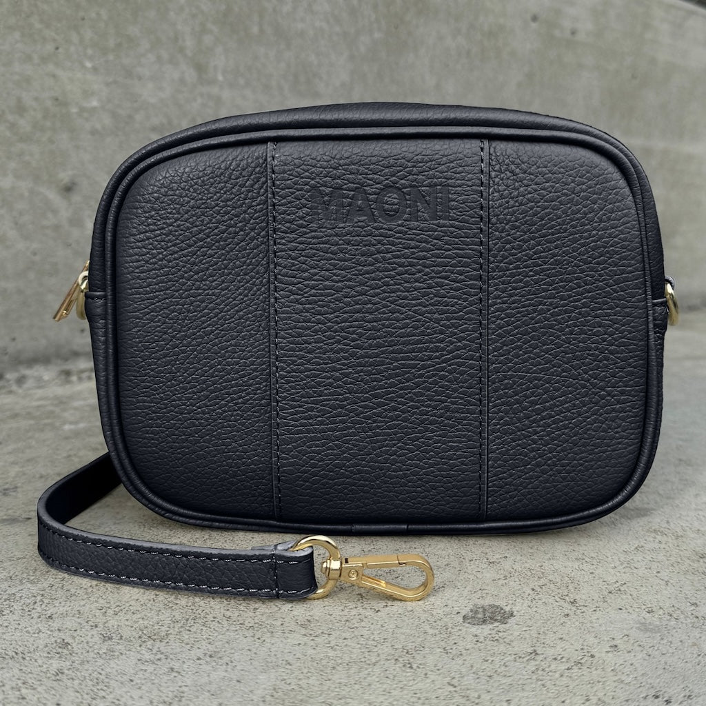 Umhängetasche + schmaler Taschengurt aus Echtleder mit goldfarbener Hardware