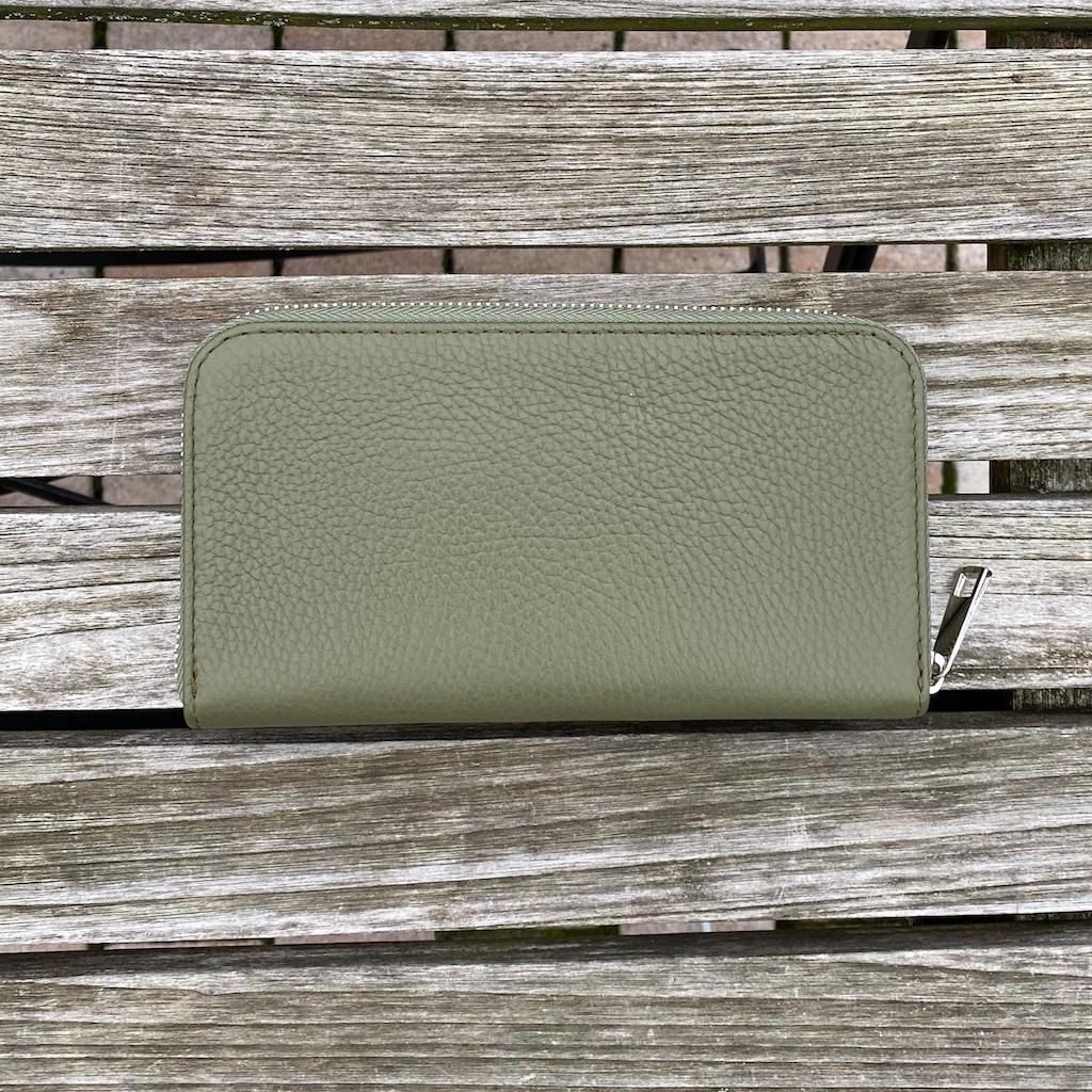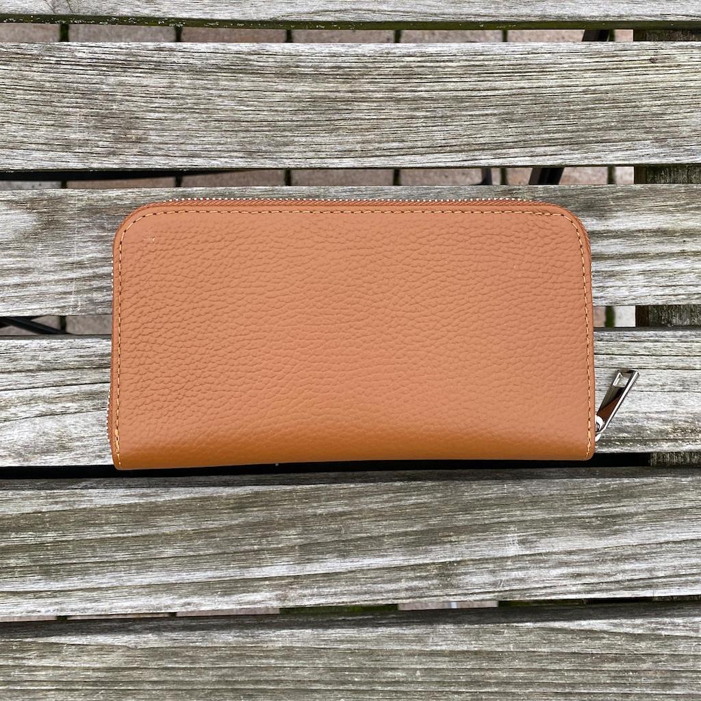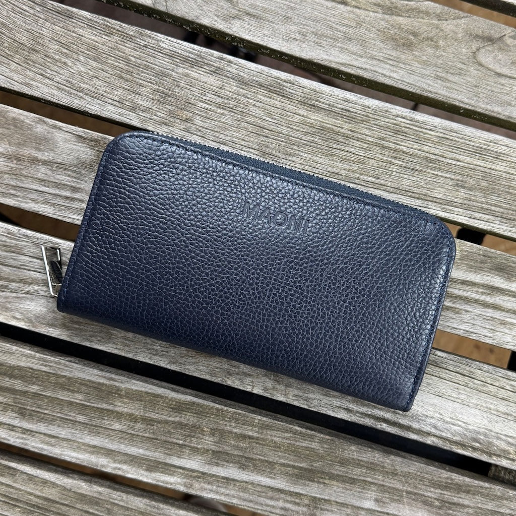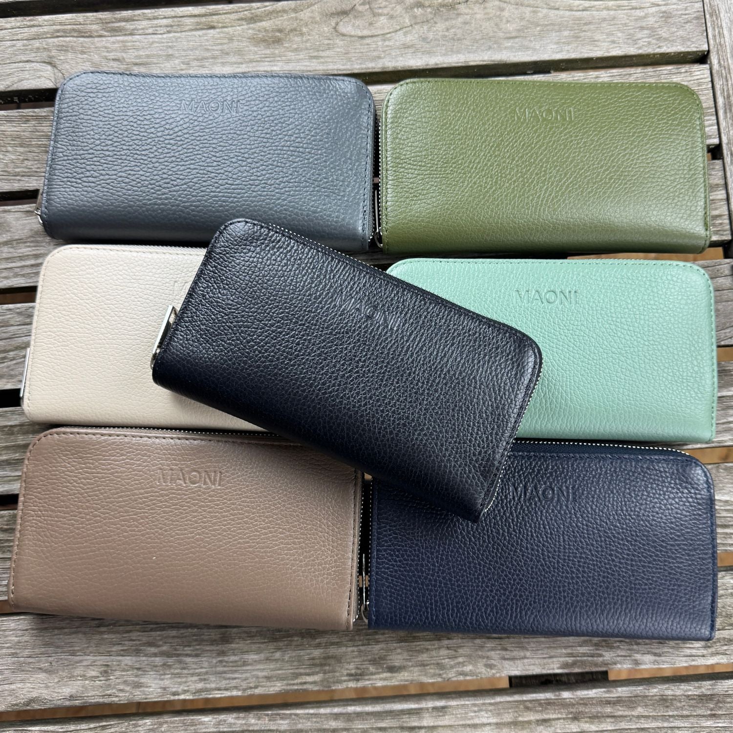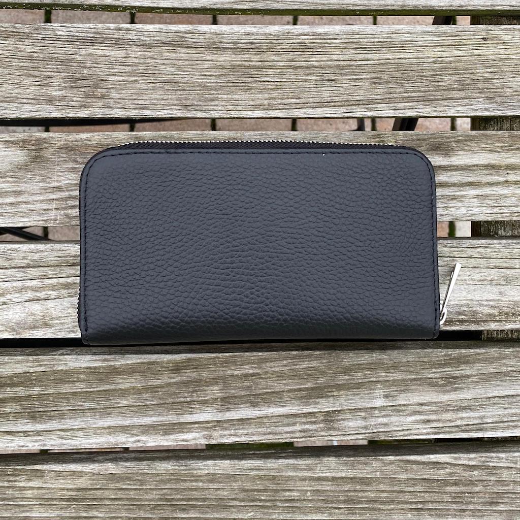 Im Lieferumfang enthalten ist eine großes Portemonnaie aus Leder. Die Geldbörse verfügt über 8 Kartenhalter, 5 Abteile für Geldscheine oder Belege und ein großes Münzfach.