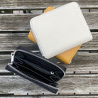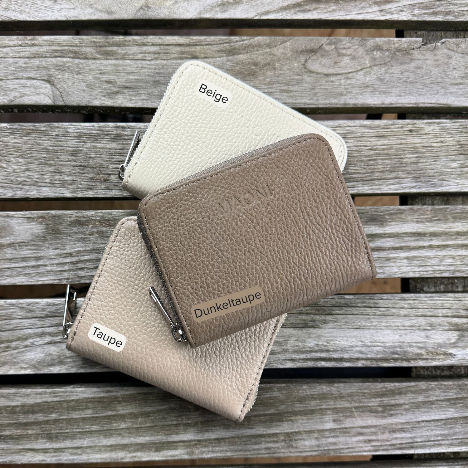 Im Lieferumfang enthalten ist eine kleine Geldbörse aus Leder. Das Portemonnaie verfügt über 4 Kartenhalter und ein kleines Fach für Münzen und eignet sich besonders gut für kleine Handtaschen.
