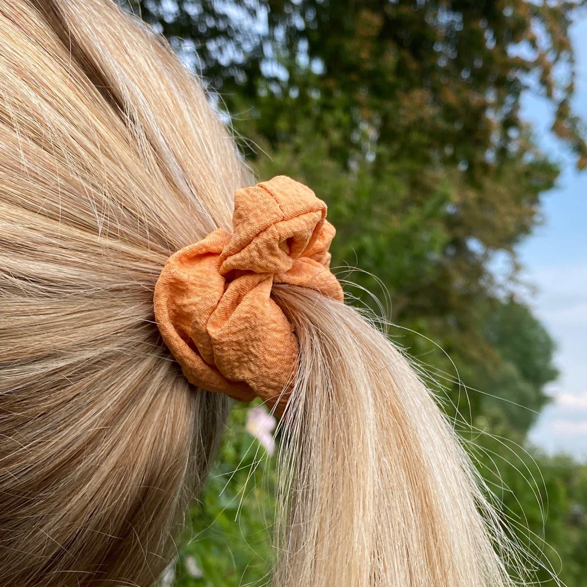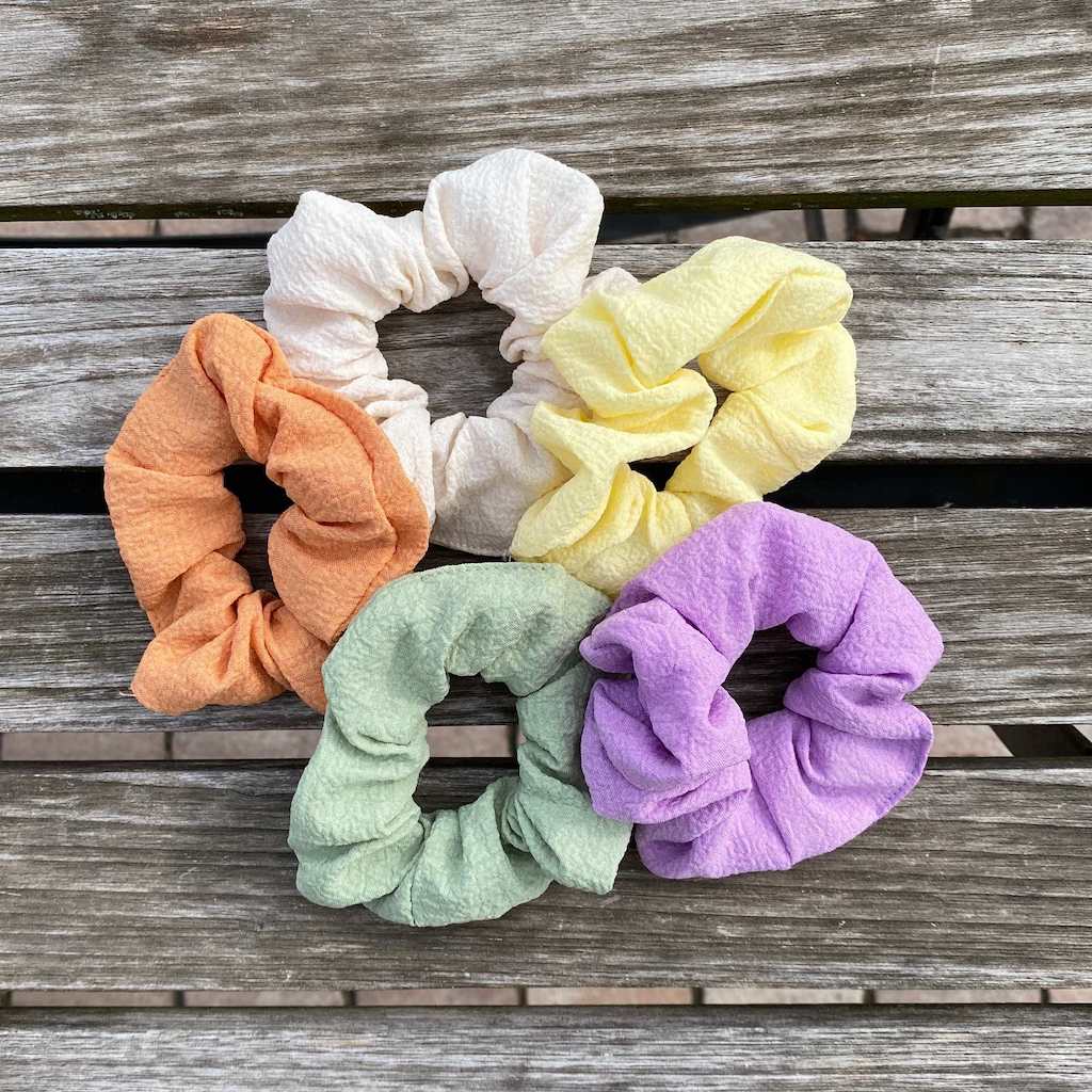 Unsere Scrunchies aus Musselin sind das ideale Accessoire, um deinem Outfit und Haar einen lässigen Look zu verleihen.