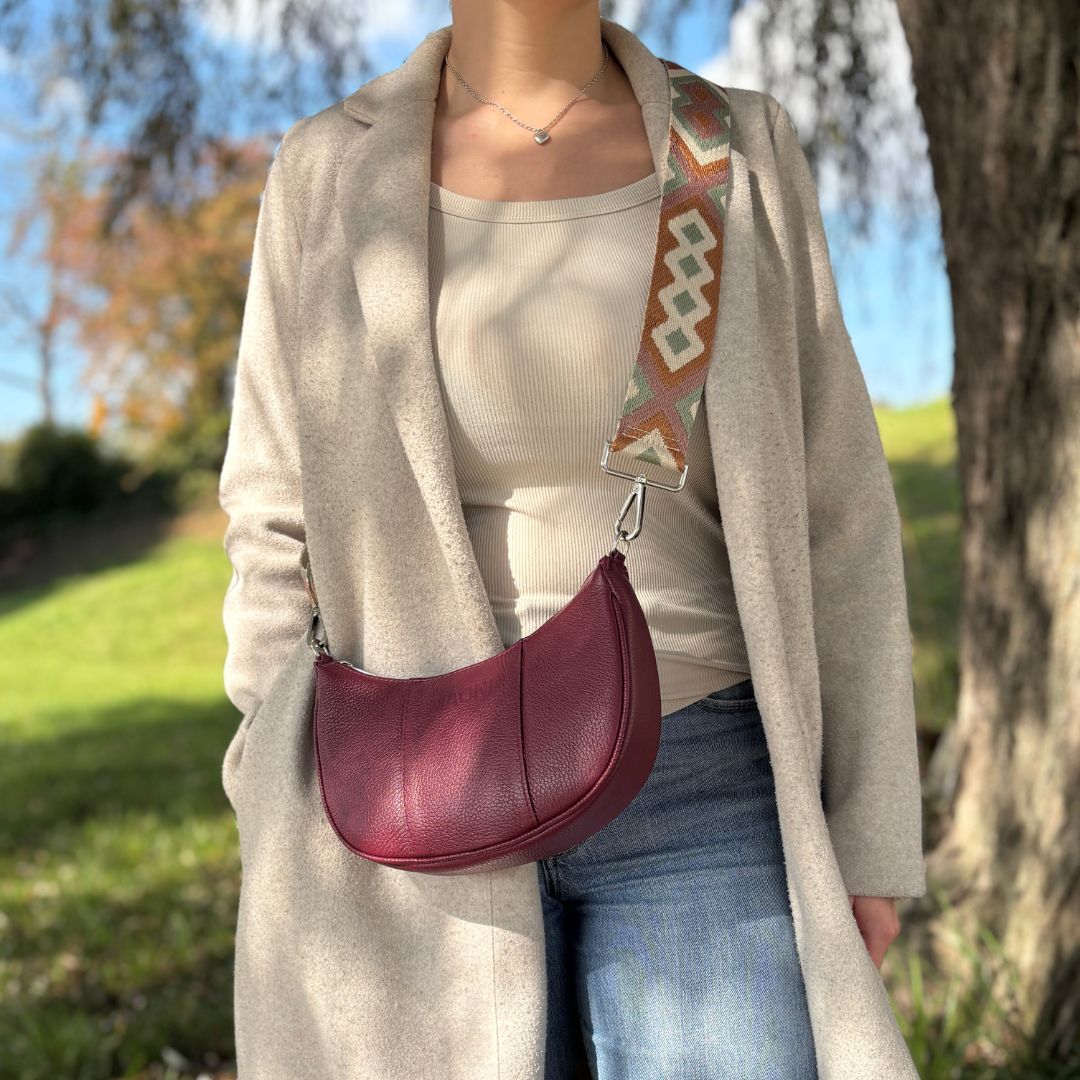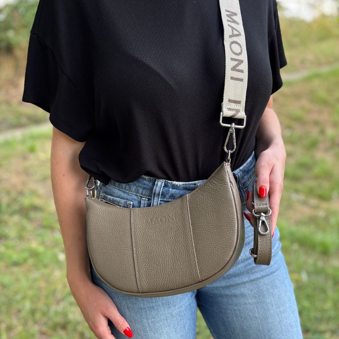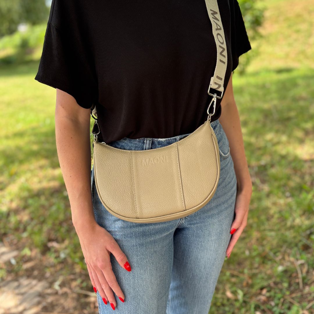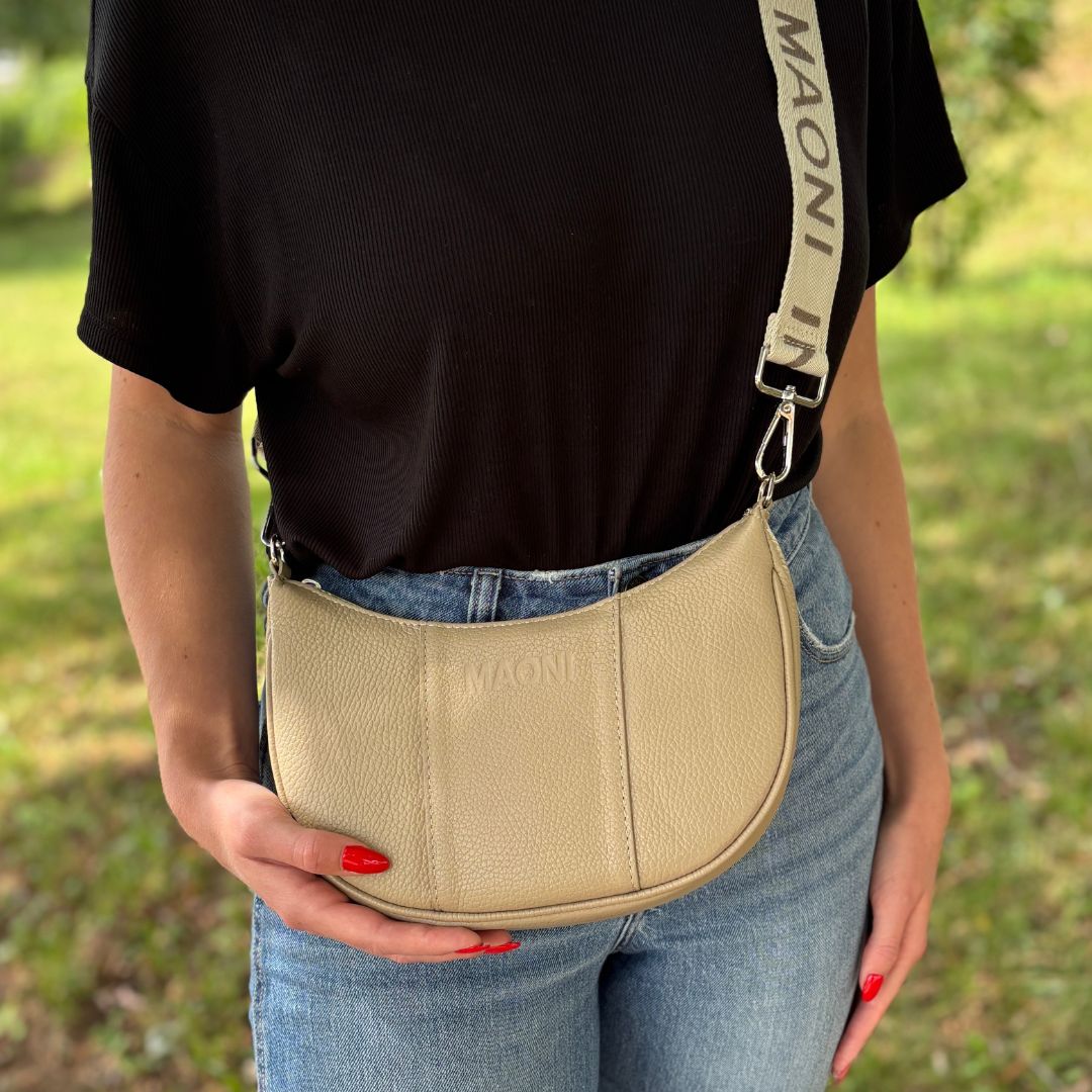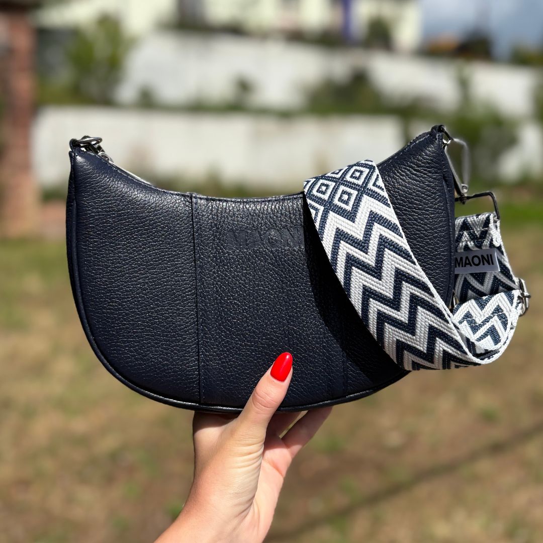 Optional: Im Set MAONI erhältst du - zusätzlich zum schmalen Ledergurt - einen breiten Taschengurt im MAONI Design.