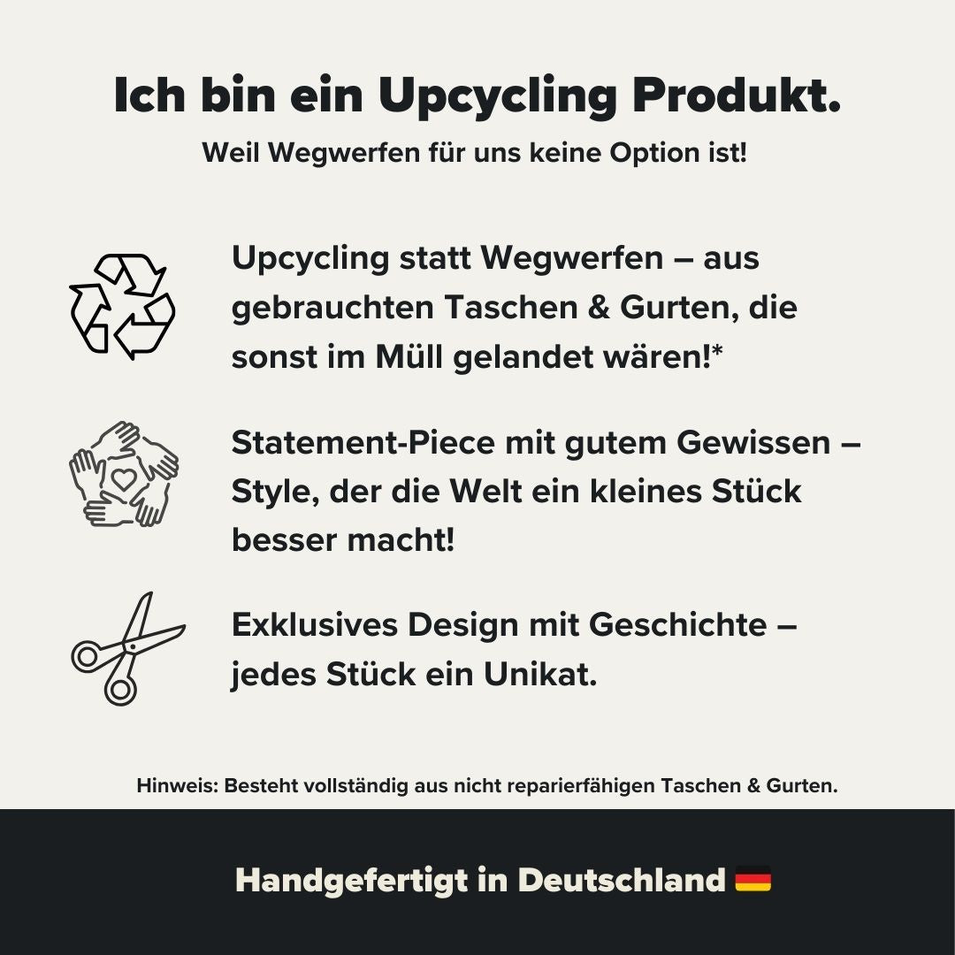 Aus nicht reparierfähigen Taschen & Gurten – einfach an den Gurt hängen & Outfit aufwerten.